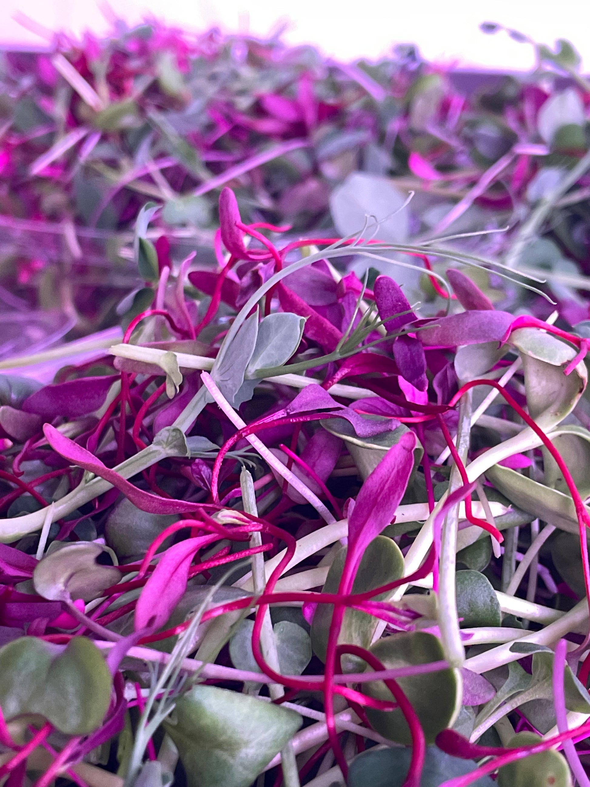 After talking with so many of our patrons of the Boca Farmer's Market, this unique mix was inspired by those looking for ways to naturally support their cardiovascular health! Contains a blend of Sunflower Shoots, Pea Shoots, Broccoli, Red Acre Cabbage, Red Garnet Amaranth, and of course Micro Beets!